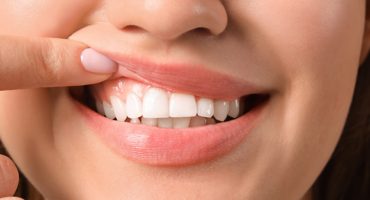 ガミースマイルとは、笑顔になった際に歯茎が多く露出する状態を指します。通常、笑顔で見える歯茎の割合はわずかですが、ガミースマイルの方は歯の上部から歯茎が広範囲にわたって見えるため、気になりやすいものです。原因はさまざまで、遺伝的な要素や、上唇が上がりすぎる動き、歯の生え方、顎の骨の成長のバランスなどが影響しています。また、噛み合わせの問題や歯の位置、歯茎の量もガミースマイルの要因となります。
