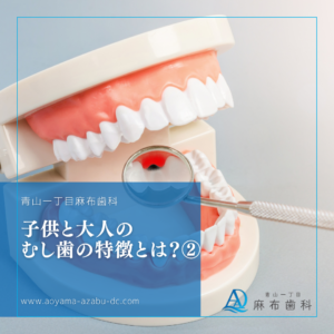 歯の裏側、歯肉と歯の境目、歯間、奥歯のミゾなど、磨き残しが発生しやすい場所に虫歯ができやすいです。大人になっても歯磨きはきちんと行わなければならないということです。